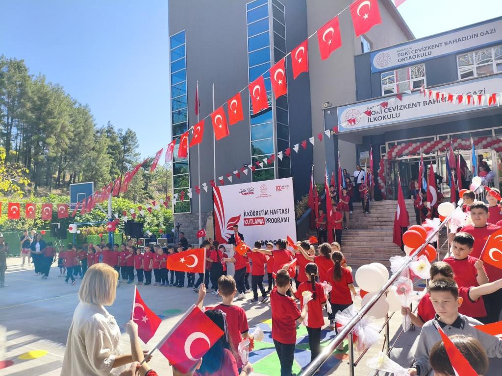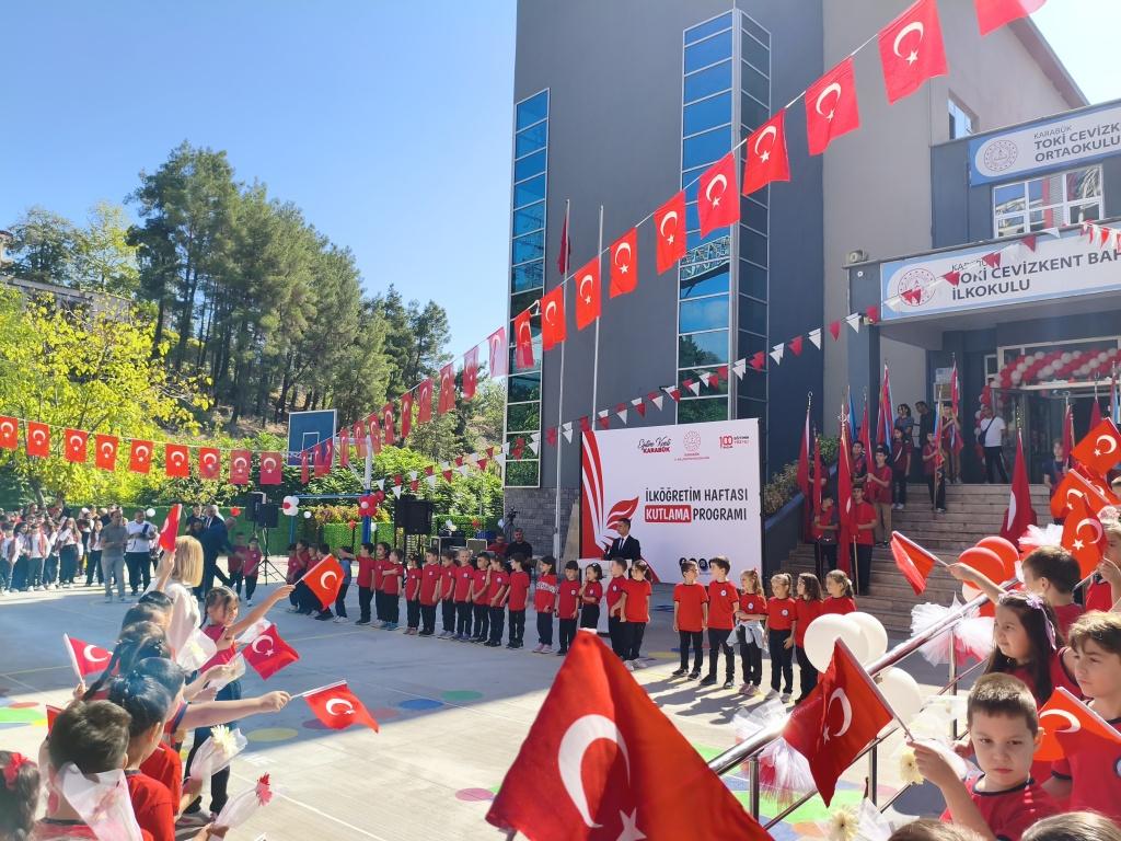 Karabük’te İlköğretim Haftası, TOKİ Cevizkent okulları bünyesinde düzenlenen törenle kutlandı. Programa Vali Mustafa Yavuz, İl Millî Eğitim Müdürü Nevzat Akbaş ve kurum amirleri katıldı.
